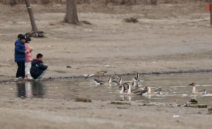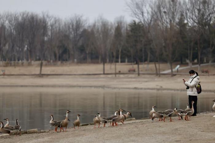 雨水节气过后,气温回升,北京南海子公园迎来首批北归鸿雁。近日,约数十只鸿雁集结于园区湖面,或游弋觅食、或列队滑翔,吸引众多市民与摄影爱好者前来观鸟打卡。